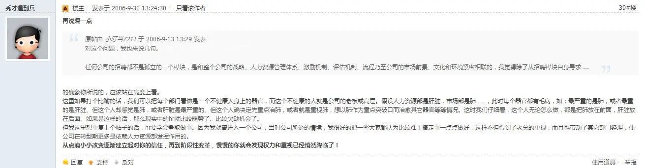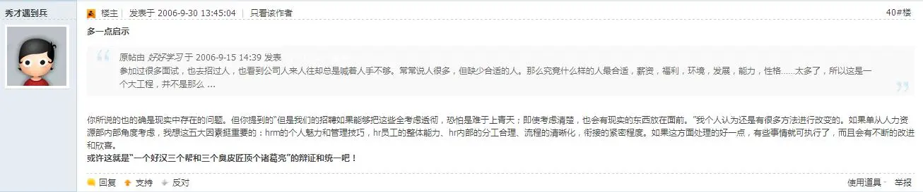 记得前几天在论坛看了一个帖子,题目叫《突然很厌倦做招聘》。当时看完之后,感觉这个问题包含的因素太多了,而其也看到了一些人的观点,我想很有必要对这个问题谈一谈,于是就有了今天写的这篇文章。