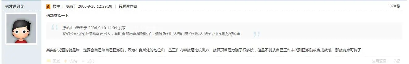 我当时偶入hr这个领域,现在虽努力工作,但兴趣仍然没有,成就感未曾体会,可能是真的厌倦了吧?