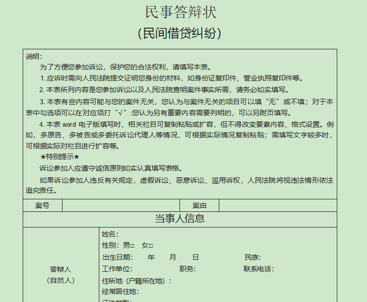现在,请打开你的文档,我们开始填空。我会以最常见的“民间借贷”为例,其他案件类型可以举一反三。